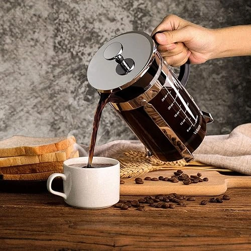 Brew rich, flavorful coffee with the Veken French Press Coffee Maker. Crafted from durable borosilicate glass and stainless steel, it features a 4-level filtration system and 34oz capacity — delivering smooth, aromatic coffee every time.